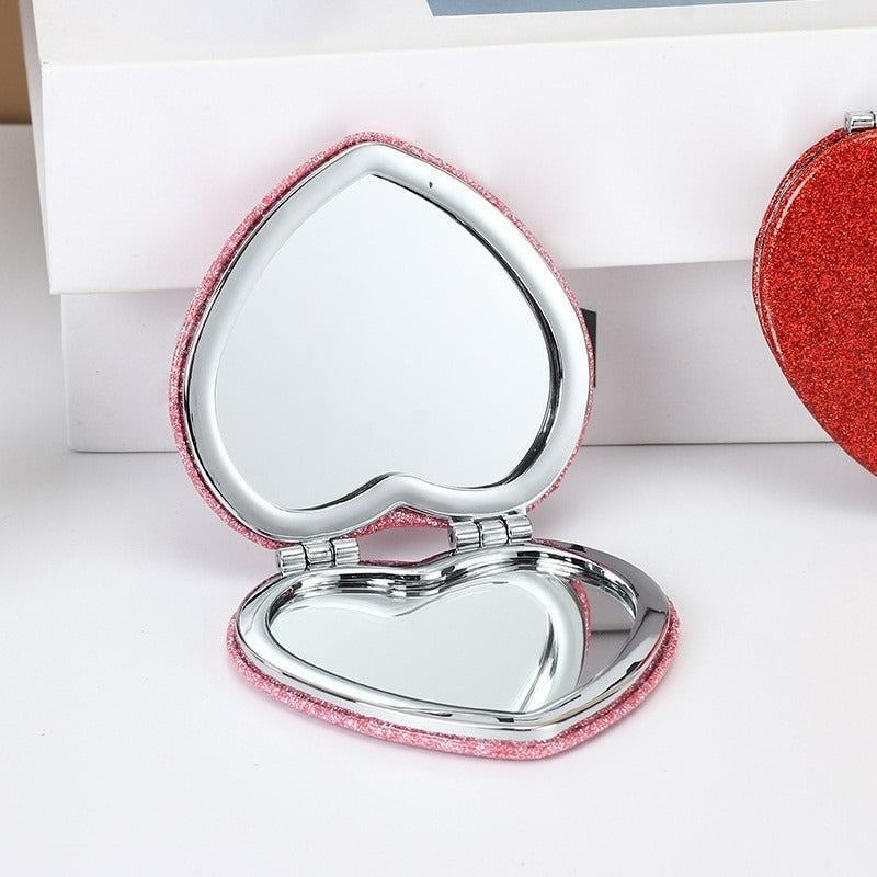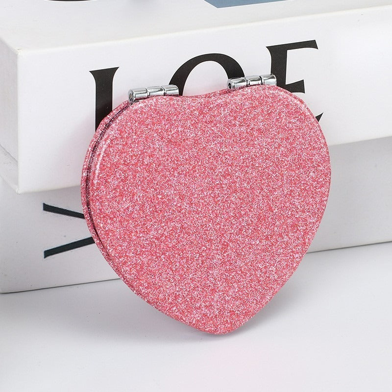 Dieser stilvolle, herzförmige Kompaktspiegel besticht durch sein funkelndes, rosa Glitzerdesign, das sowohl schick als auch praktisch ist. Er ist leicht und tragbar und passt problemlos in Ihre Handtasche oder Kosmetiktasche, sodass Sie sich unterwegs schnell frisch machen können. Mit seinem eleganten Aussehen und seinem funktionalen Design ist dieser Kompaktspiegel auch ein durchdachtes und charmantes Geschenk für Freunde, Töchter oder Ihre Liebsten.